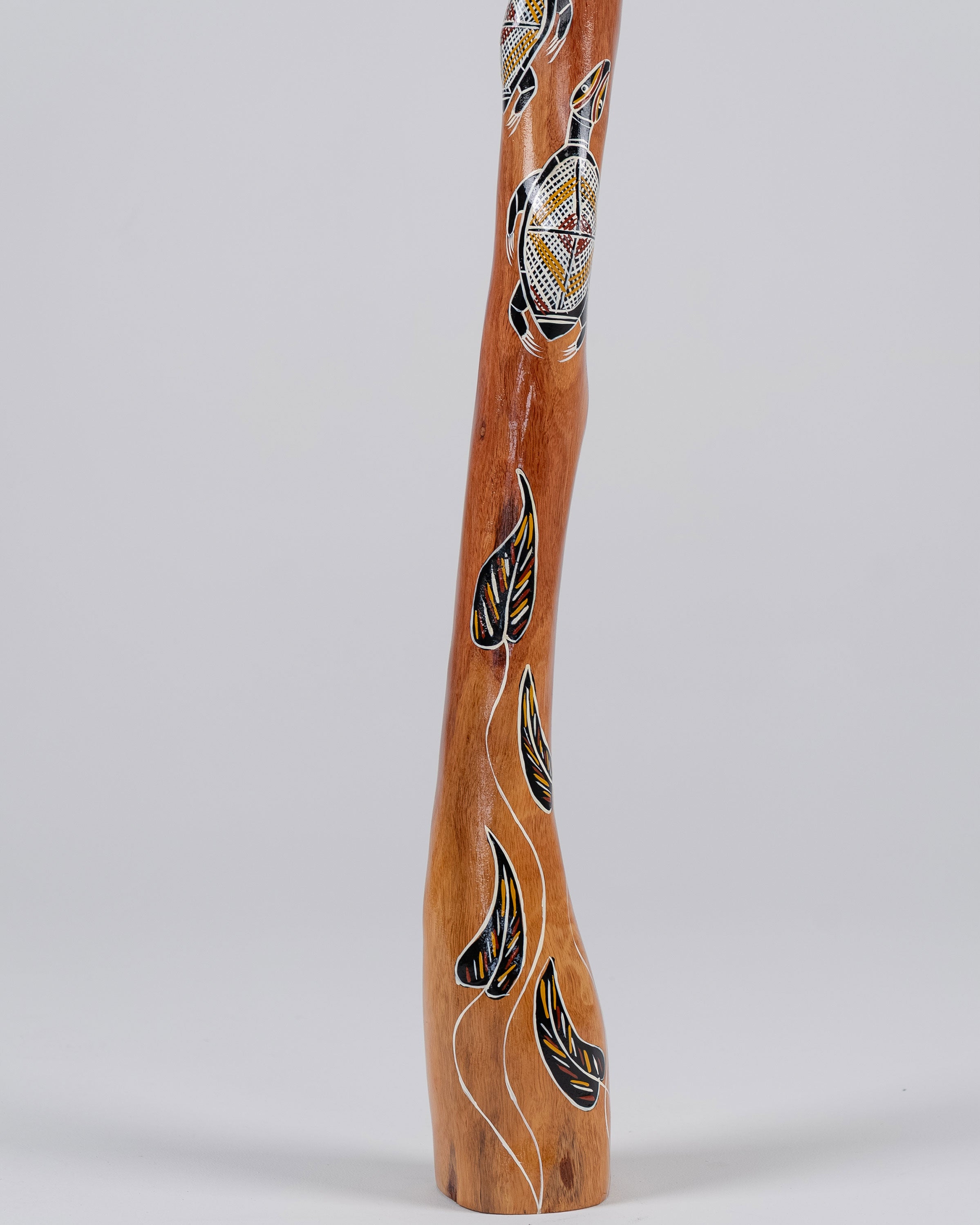 It is then further shaped and refined to improve the sound and resonance. The didgeridoo is then taken back with a fine sand to reveal the character of the grain. Bondcrete is applied to protect and seal the timber and further highlight its natural beauty.