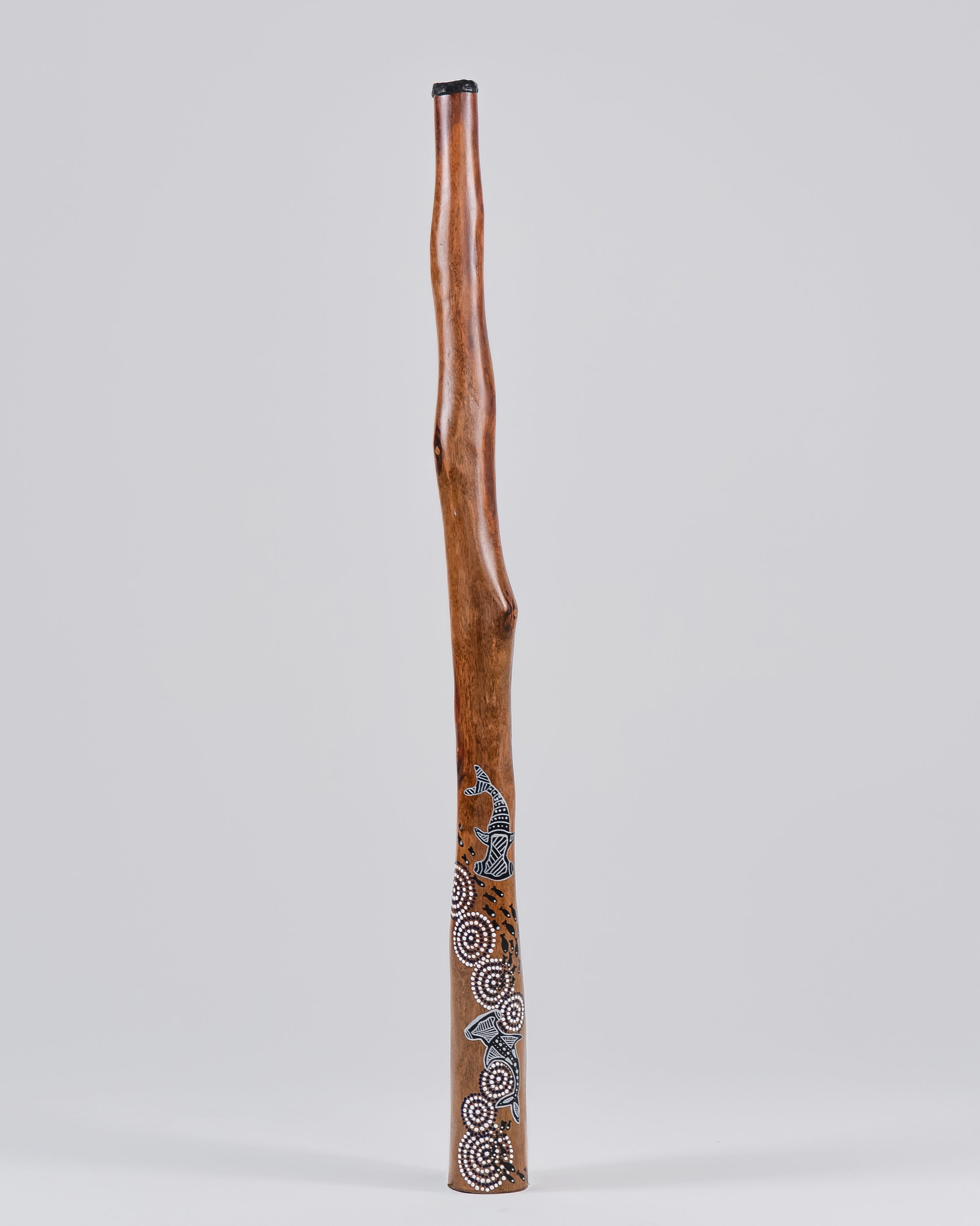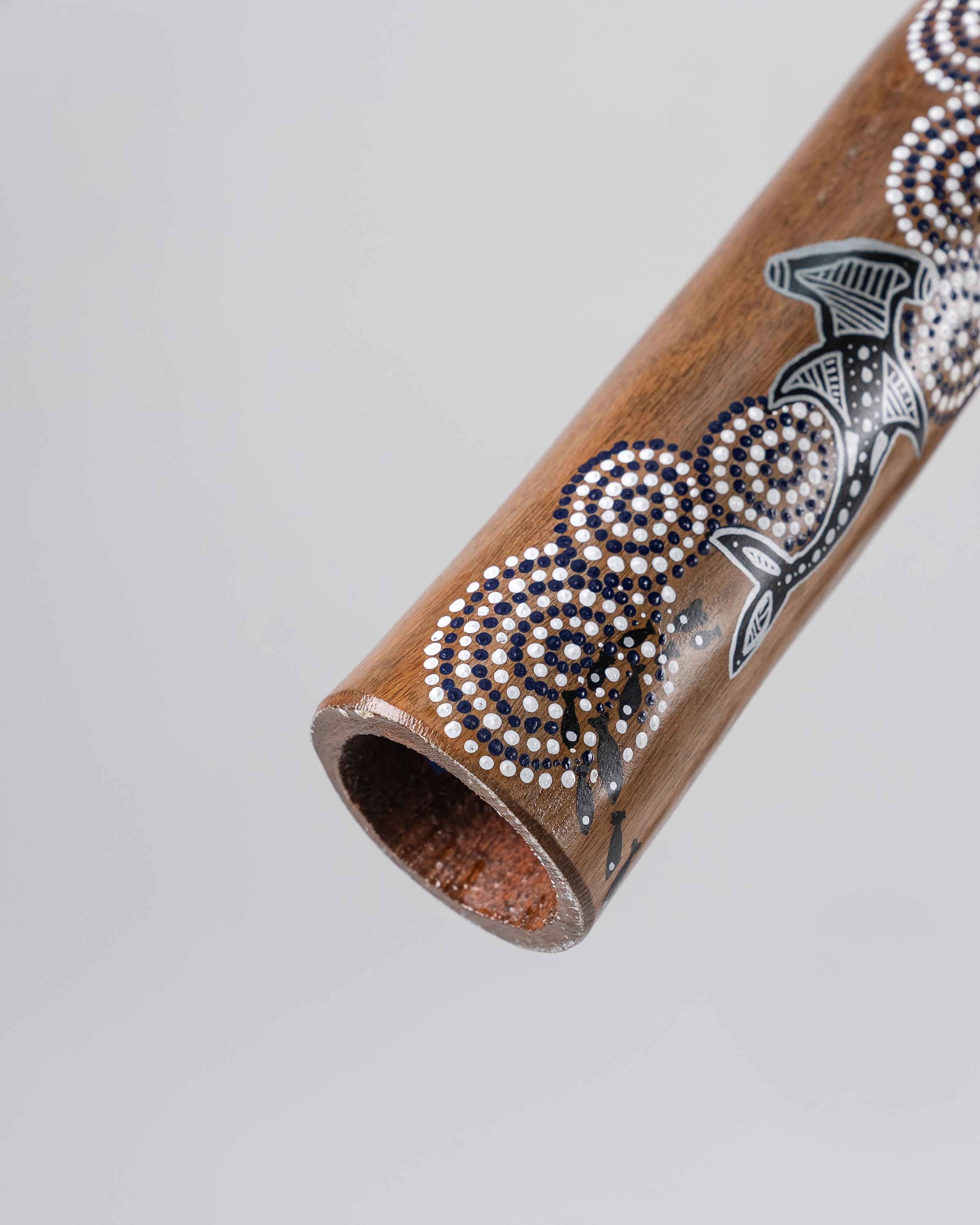 Handpainted by local Indigenous artist Angie Cleaver a descendant of the Pinterrainer and Parperloihener people of Tasmania (Lutruwita). On this didgeridoo Angie celebrates Warriyangalayawu: The most common term for the hammerhead shark, which is an important Spirit Ancestor Other terms like yulmunji and nuwanyngbirri are used for spiritual context or very large.