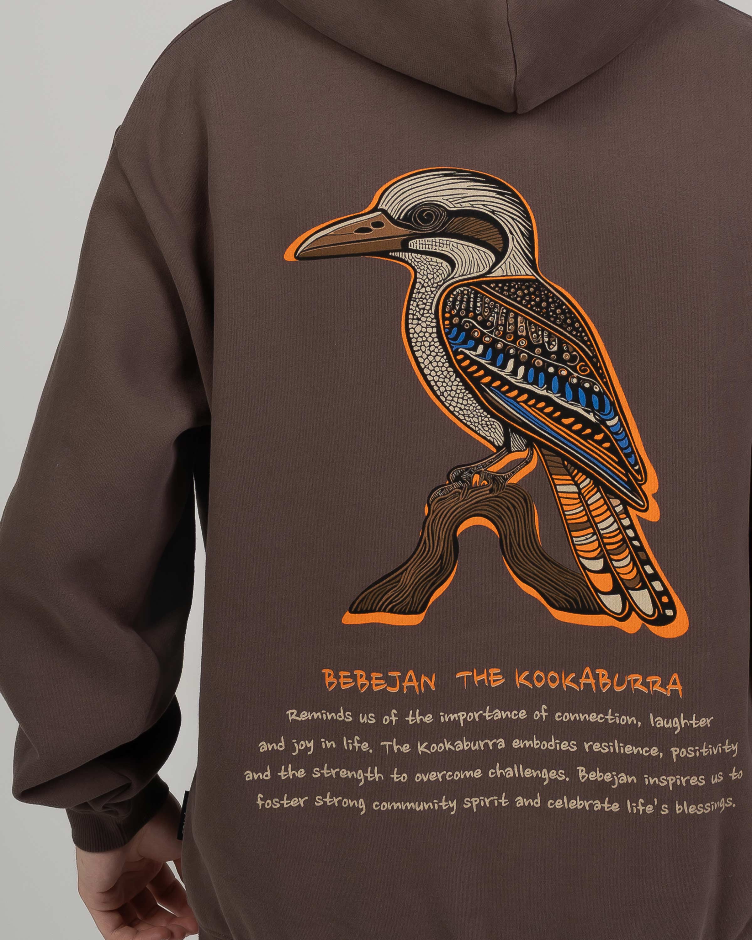 Introducing the Bebejan Hooded Sweat  – Bebejan reminds us of the importance of connection, laughter and joy in life. The Kookaburra embodies resilience, positivity and the strength to ovecome challenges. Bebejan inspires us to foster strong community spirit and celebrate life's blessings.