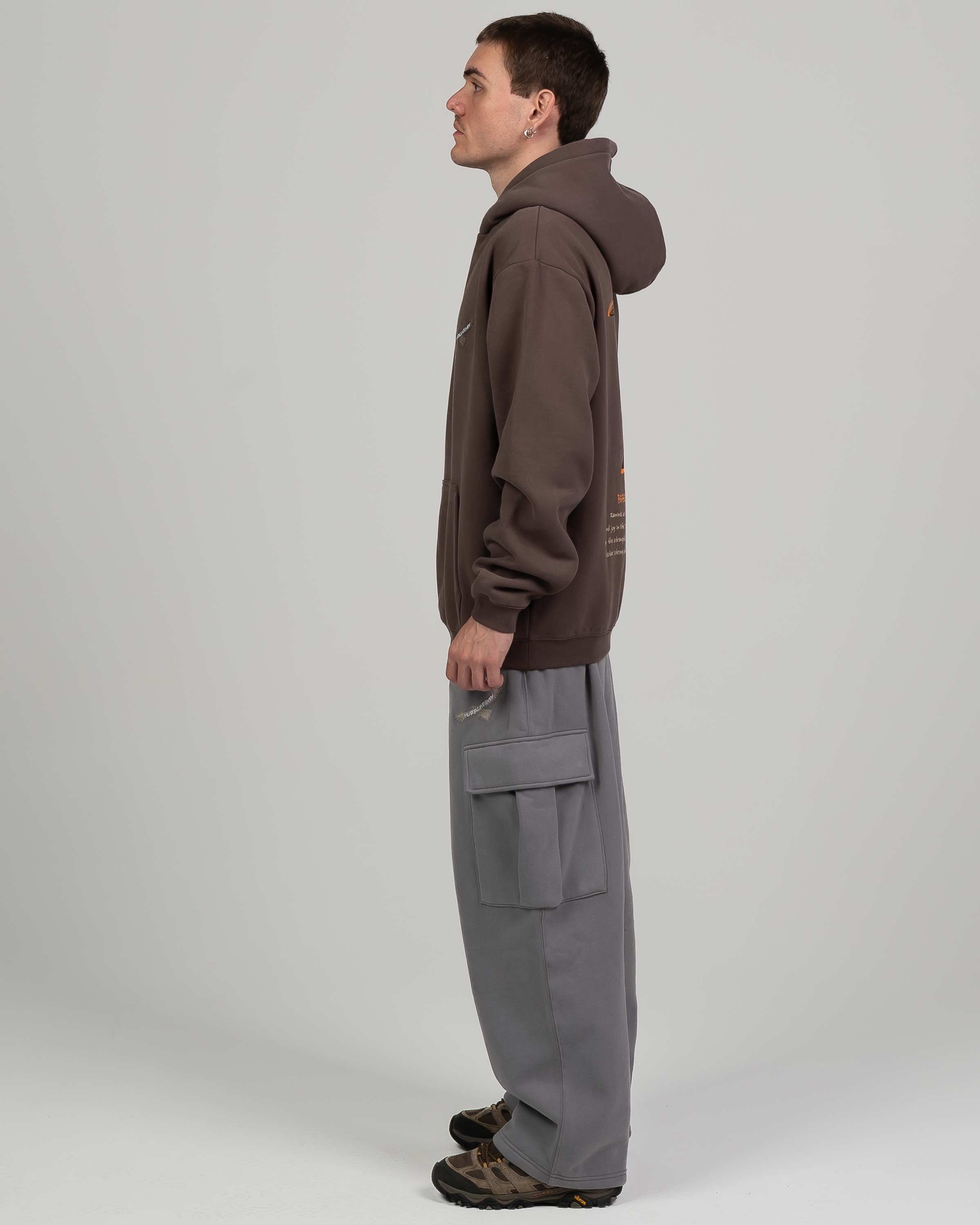 Derese is 180cm and wears a size Large in our Hooded Sweat